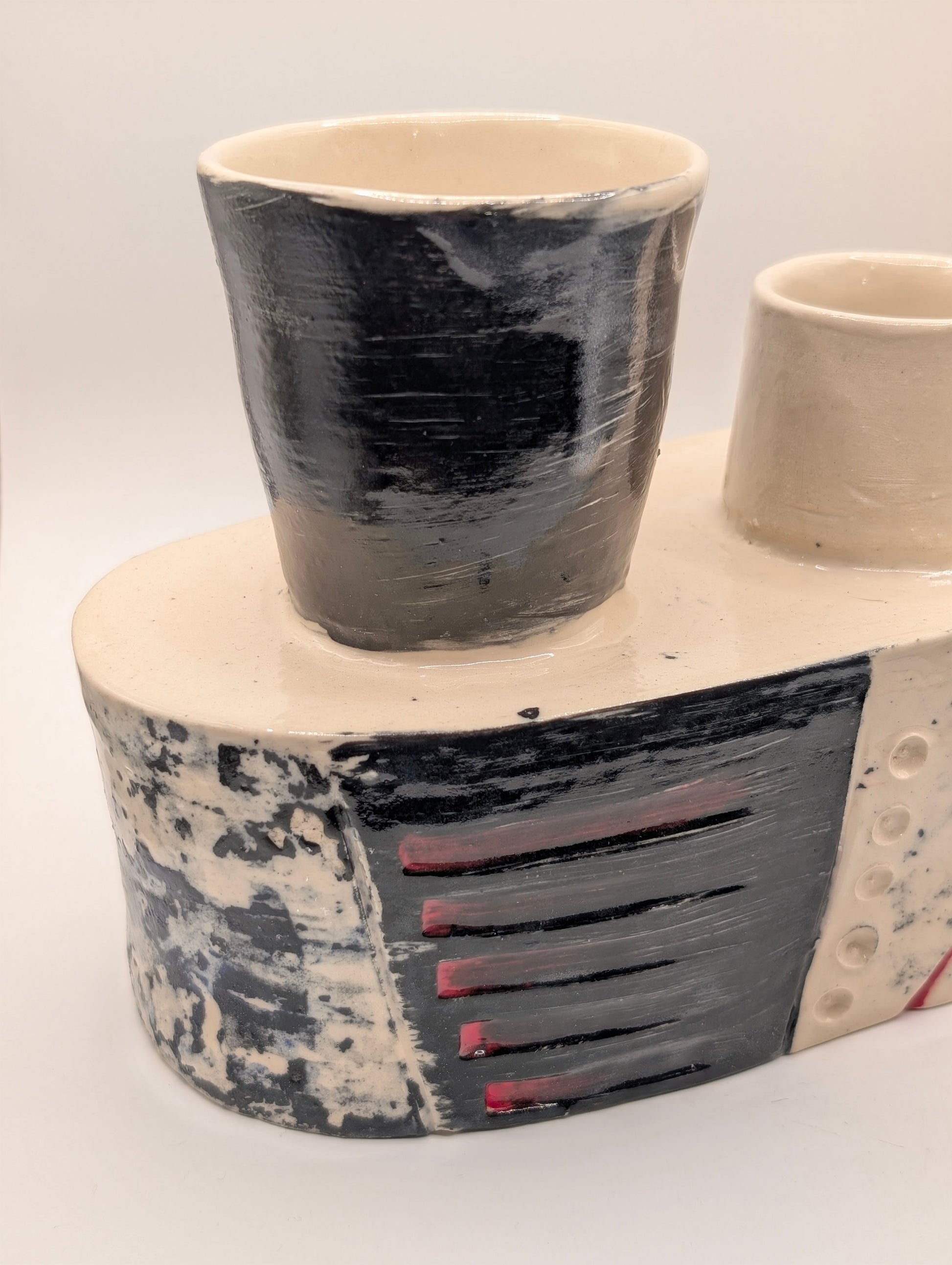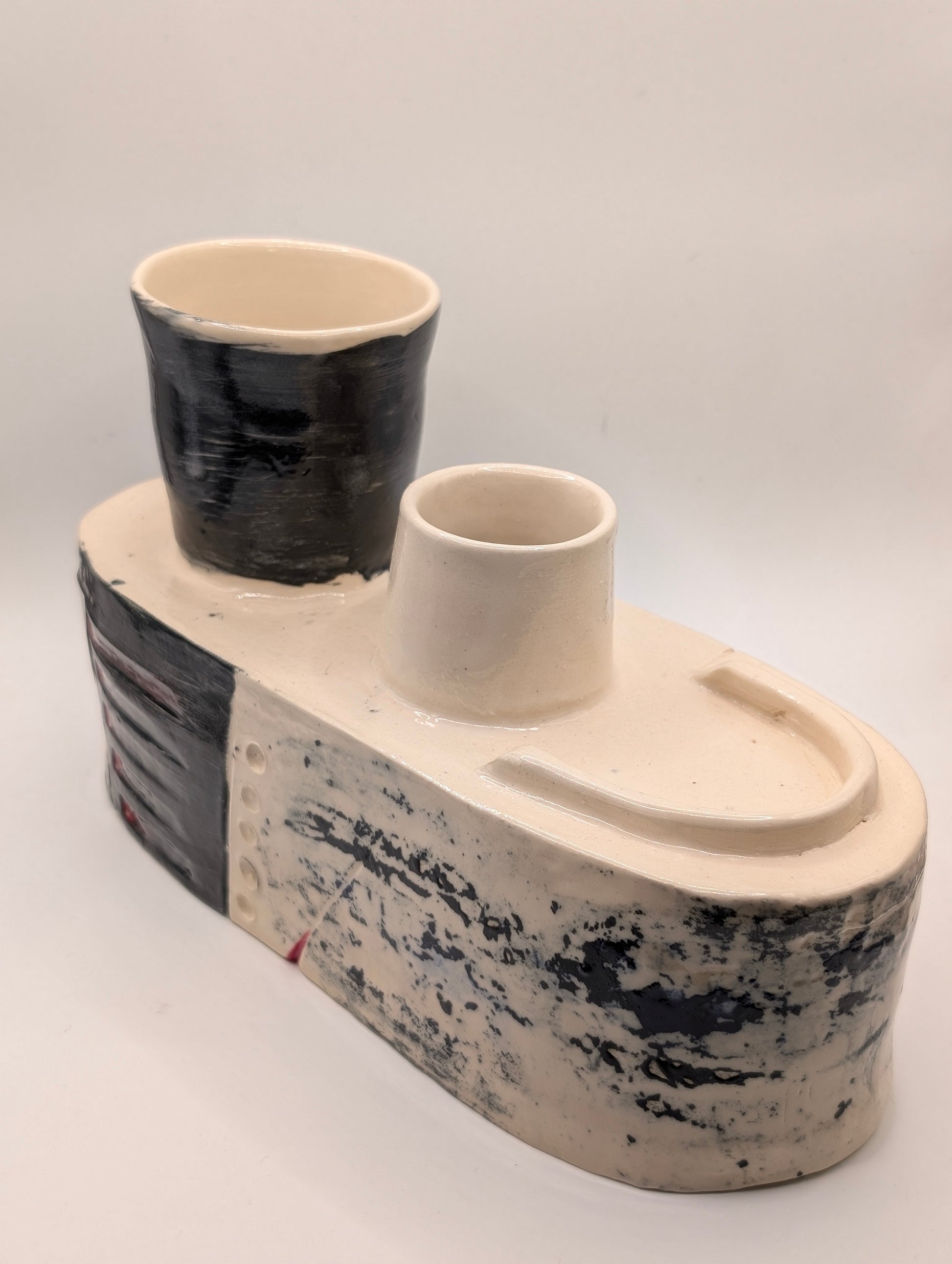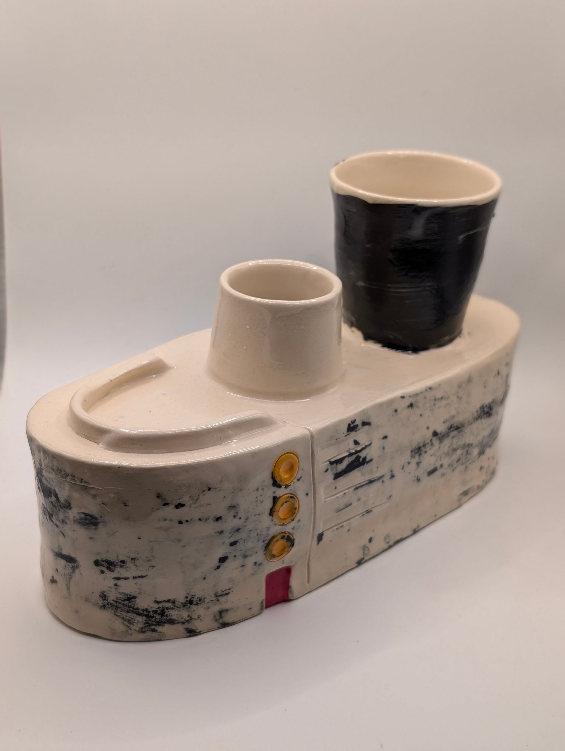 Laden speaks to the quiet gravity of holding — the way a form can carry both weight and tenderness. Its volume suggests fullness, yet there is restraint in its stance, as if the piece bears something unseen. The surface reflects the tension between burden and grace, the silent dignity of what is carried, and the space it leaves behind.